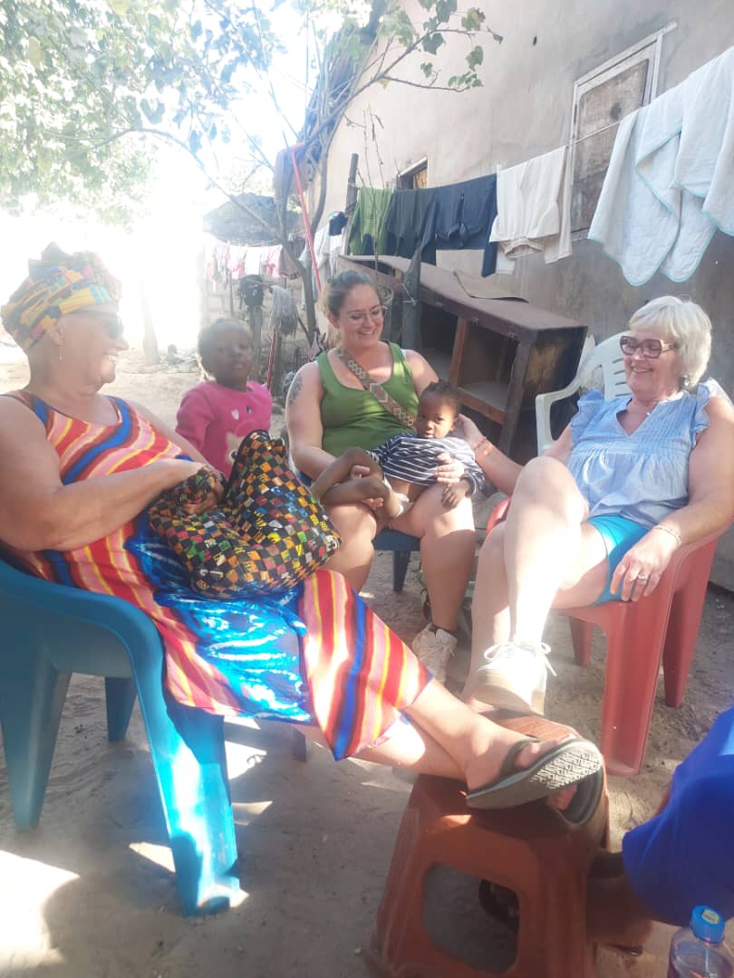 We zijn daarna ook naar hun compound geweest, ik vind het belangrijk te zien waar en hoe onze sponsorkinderen leven. Vader Lamin is een harde werker als kok maar heeft daarmee maar een klein salaris. Hun compound (de grond) is eigendom van de familie maar de huisjes van leem en golfplaat zijn klein en zeer sober, er is geen luxe te vinden. Deze familie (ze wonen daar met broers, zussen, tantes, neefje en nichtjes etc.) behoort echt tot de arme Gambianen en onze steun daar is beslist noodzakelijk en terecht.