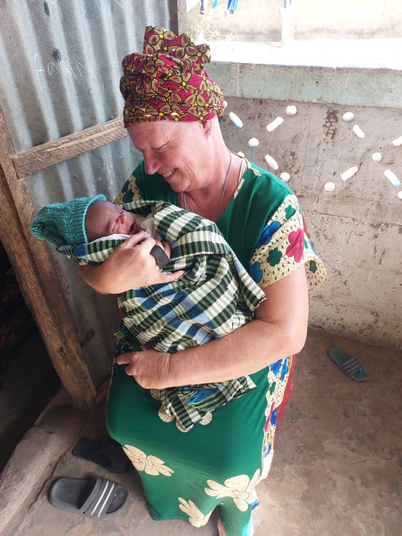 Bij de grote Jammeh familie ontmoeten we altijd een heel aantal van onze studentjes/studenten. Iedereen maakt het goed en alle kinderen zien er ook gezond en goed uit! We hebben onze kerstafbeelding/foto gemaakt en dat was zo leuk en bijzonder; een islamitische familie die meedoet om een christelijk kersttafereel na te maken! (zie bijgevoegde kerstkaart). Opa Ibrahim (Abraham) als herder met een klein schaapje uit eigen stal, kleindochter Mariama (Maria) en kleinzoon Yusupha (Jozef) met pasgeboren broertje Demba Wim (5 weken) als de ‘Heilige Familie’, hoe oecumenisch kun je zijn?!